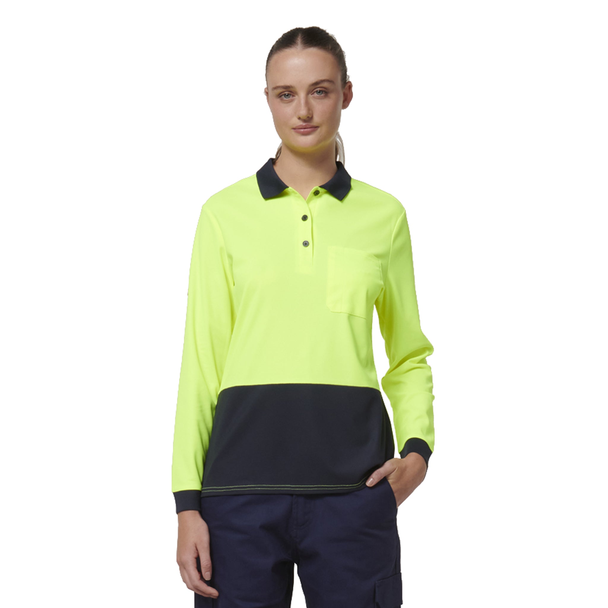 Hard Yakka Women's Core Hi Vis L/S Spliced Polo