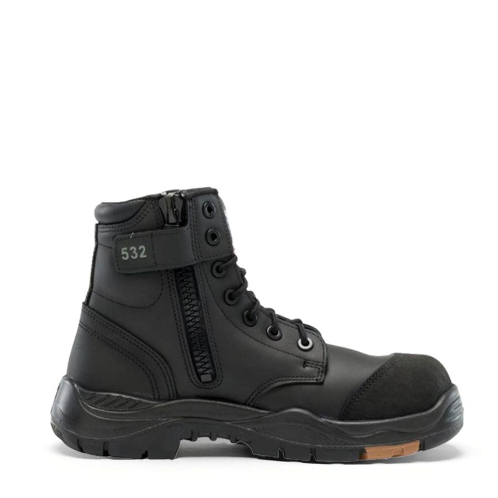 Mid-height wheat leather workboot with a 532 side zip and a matching toe cap and sole.