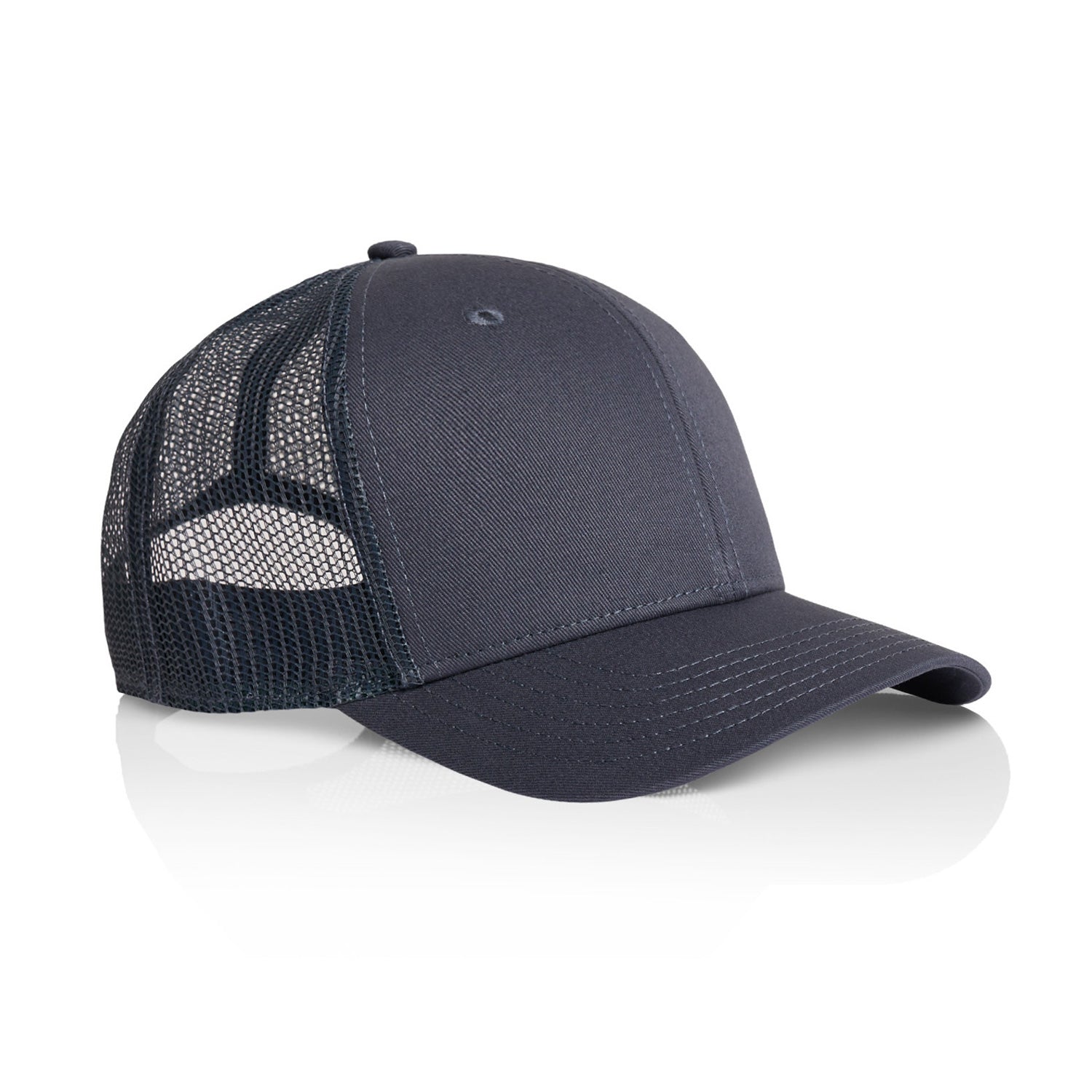 Embrace casual cool with the AS Colour Icon Trucker Cap. Featuring a mid-profile snapback design with a curved peak, it blends mid-weight 100% cotton on the front and peak with breathable 100% recycled polyester mesh on the back. Complete with a plastic snapback closure and tonal under-peak lining for all-day comfort.