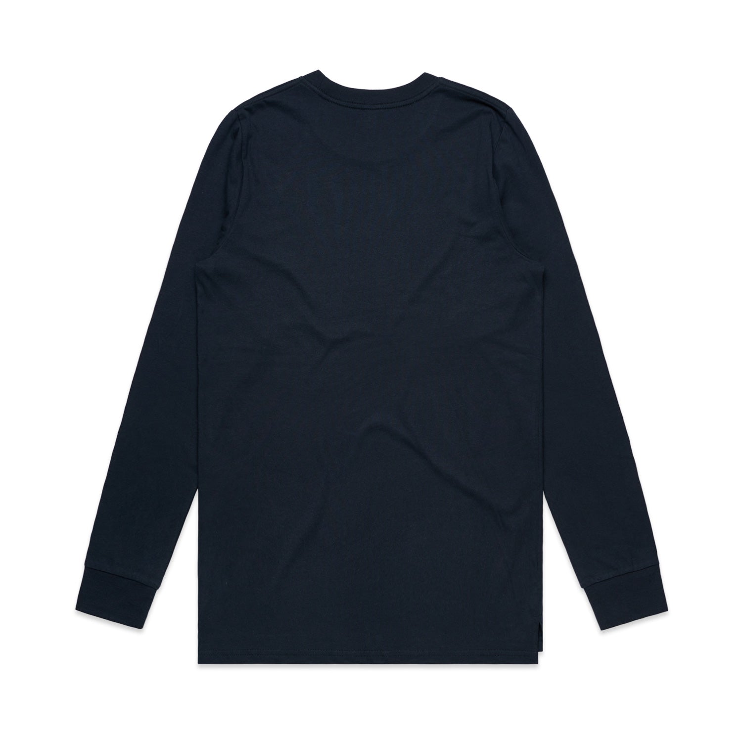 - Crew neck, longer body, cuffed sleeves, split detail at sides, slight drop at back
