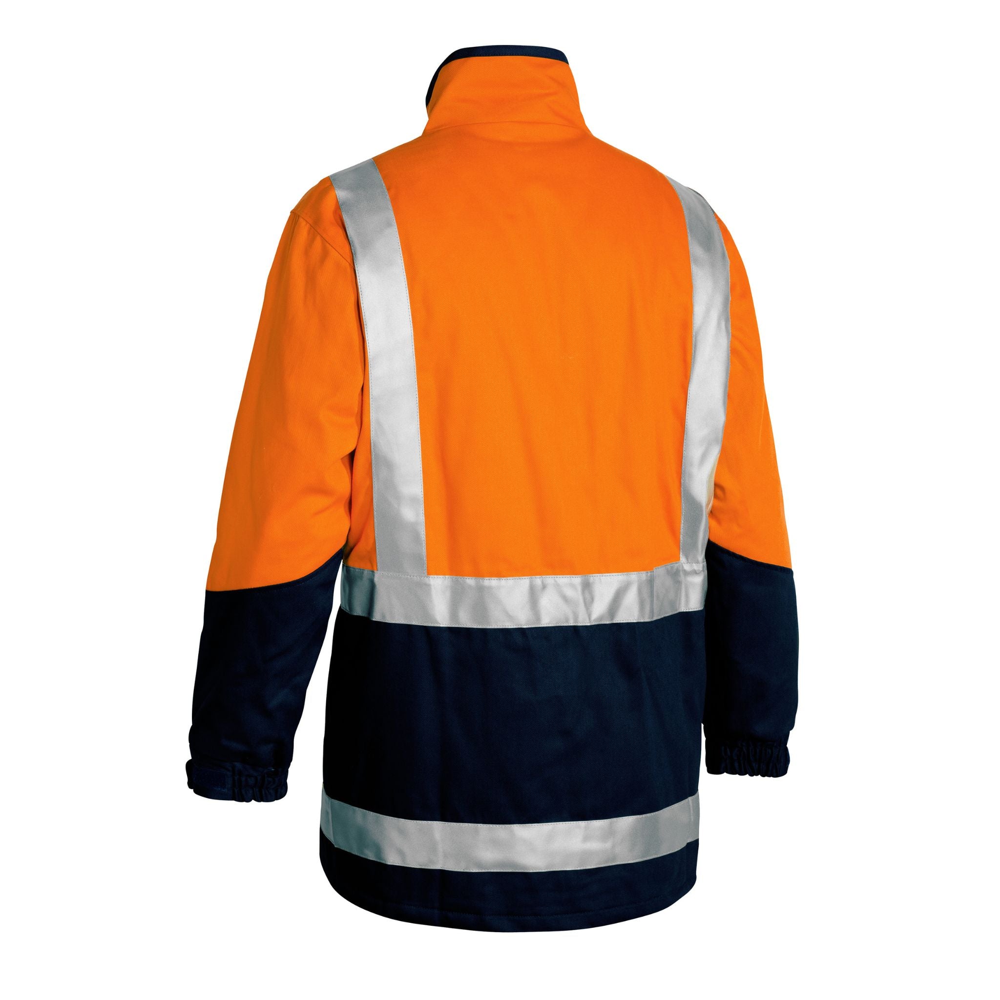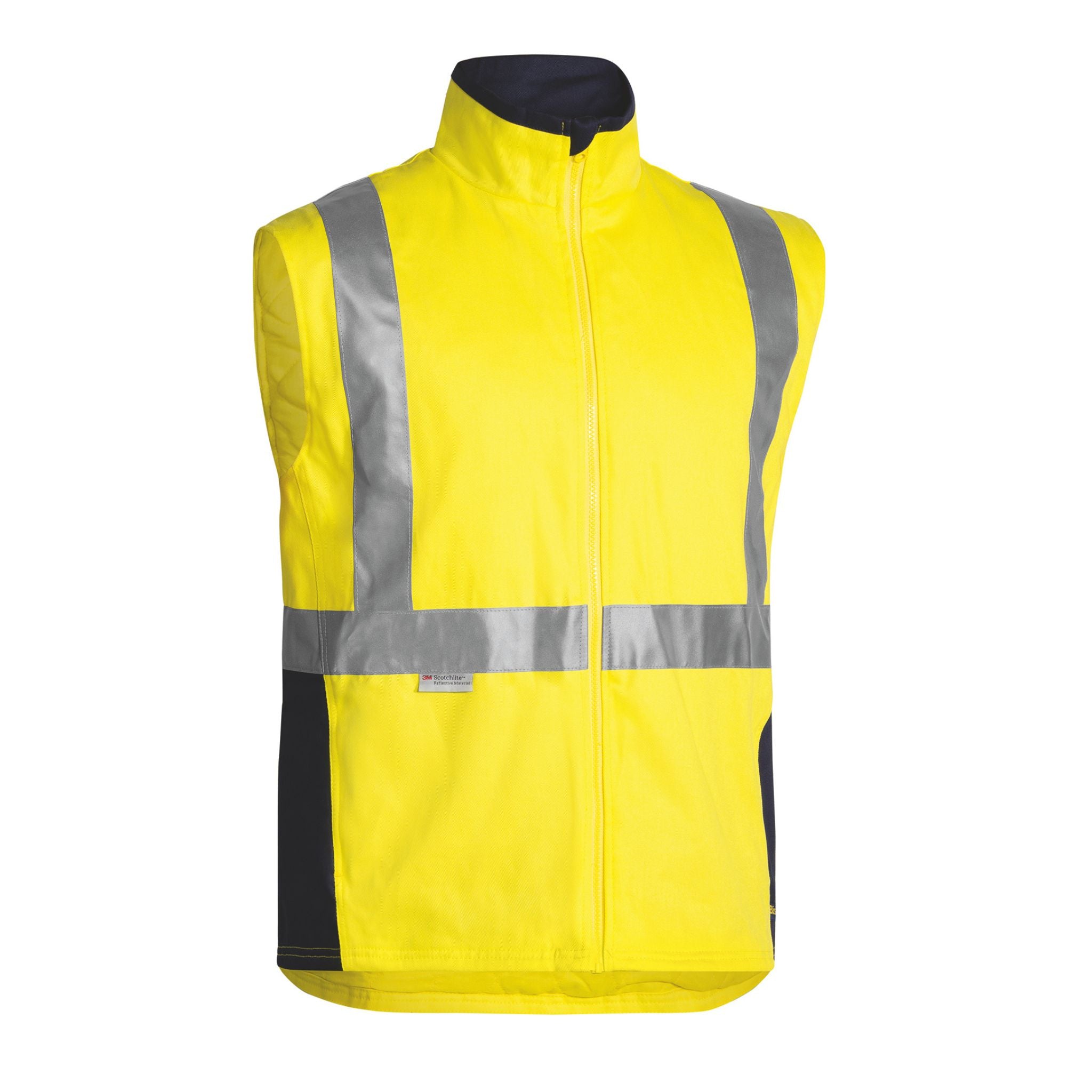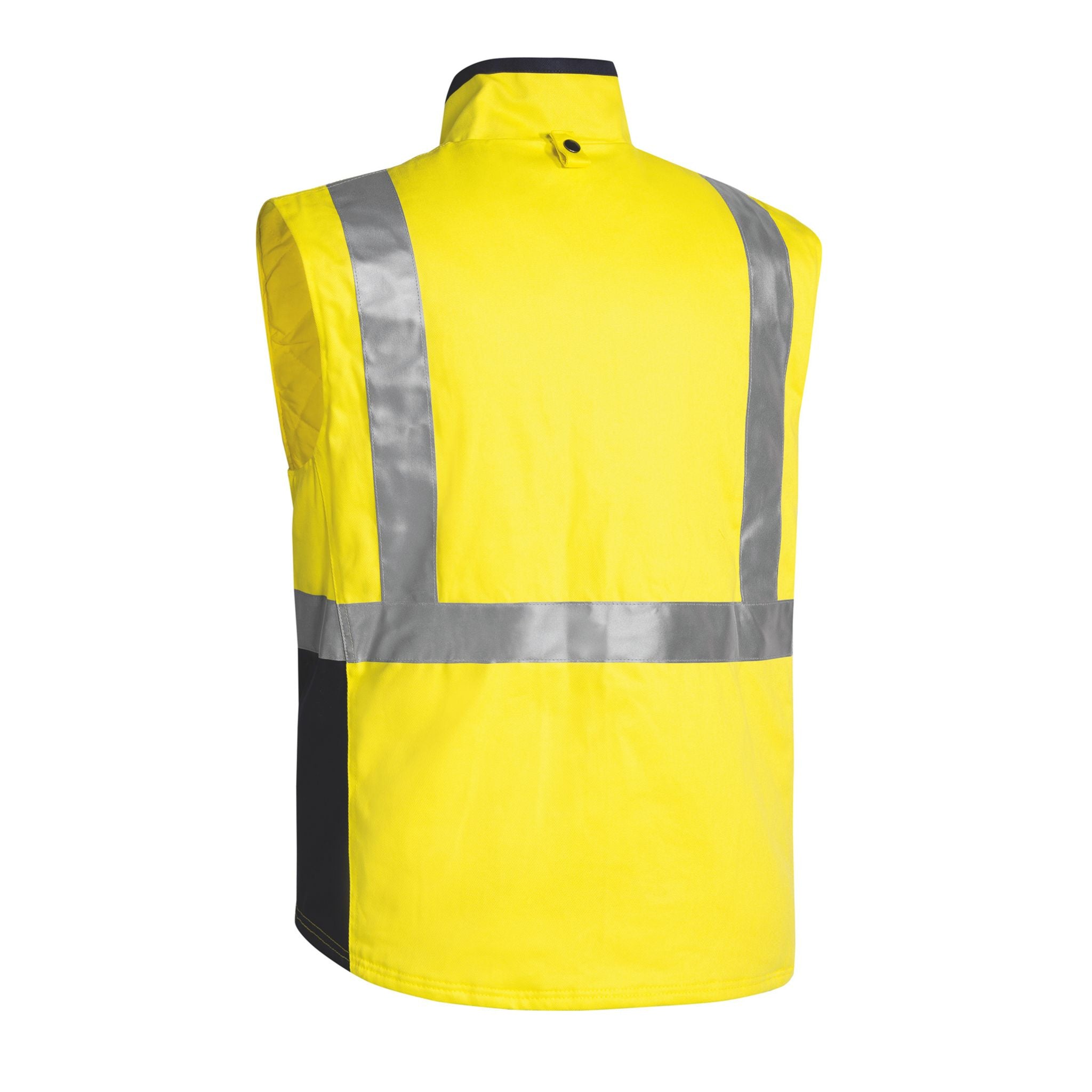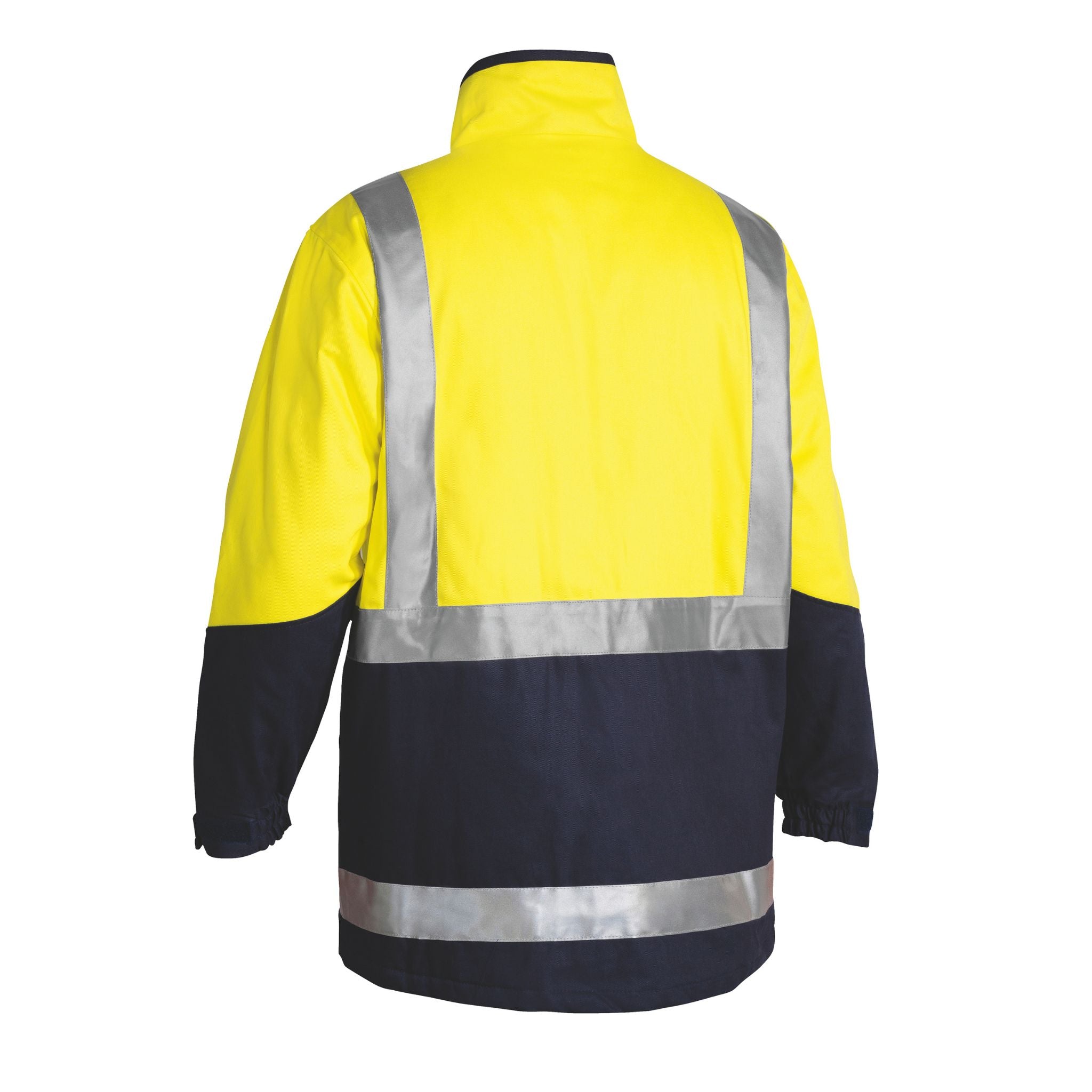 The Taped Hi Vis 3-in-1 Drill Jacket features a reflective H-pattern tape and a versatile design that can be worn as a jacket and vest combo, jacket only, or vest only for adaptable protection.