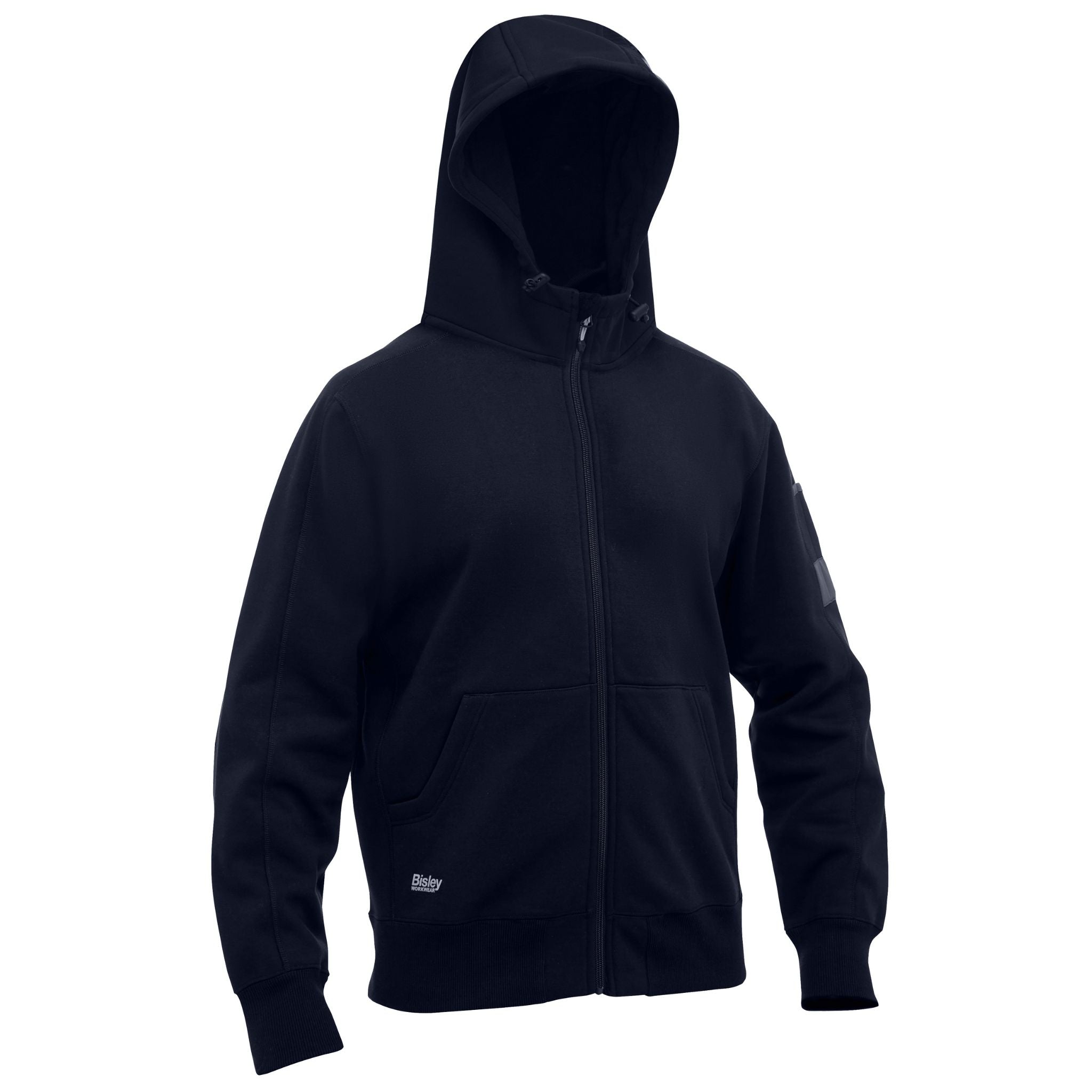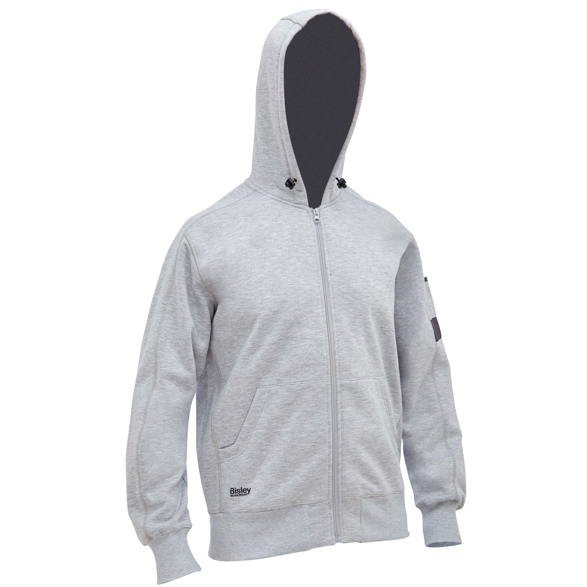 Made from low pill brushed fleece with a plush inner, it ensures warmth and durability. Featuring a shaped hood with contrast internal lining and adjustable toggle, along with a full open front zip for easy wearability. With practical elements like a front kangaroo pouch pocket, a sleeve pocket with pen division and reinforced panels, and elasticated rib knit cuffs and hem, it's the perfect wear for your workday.