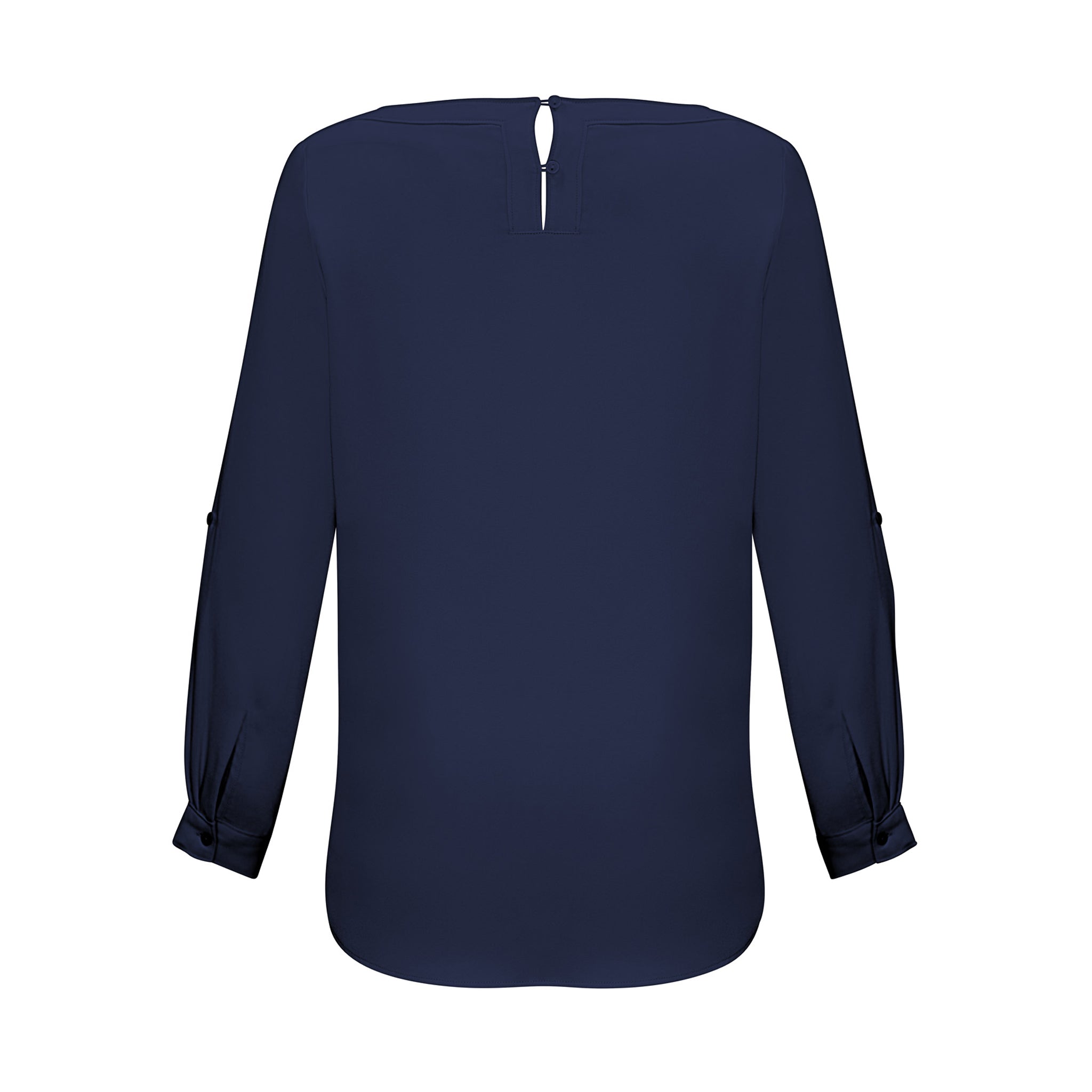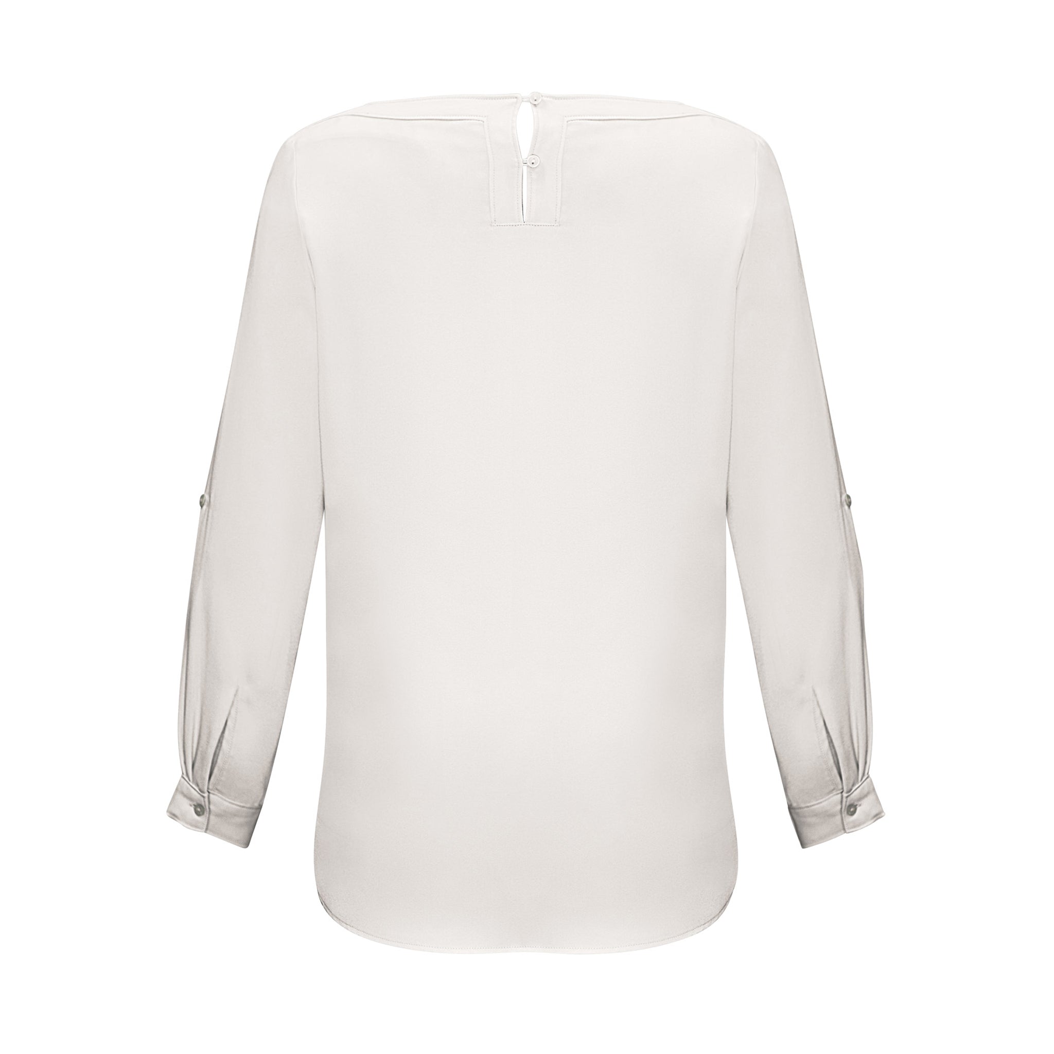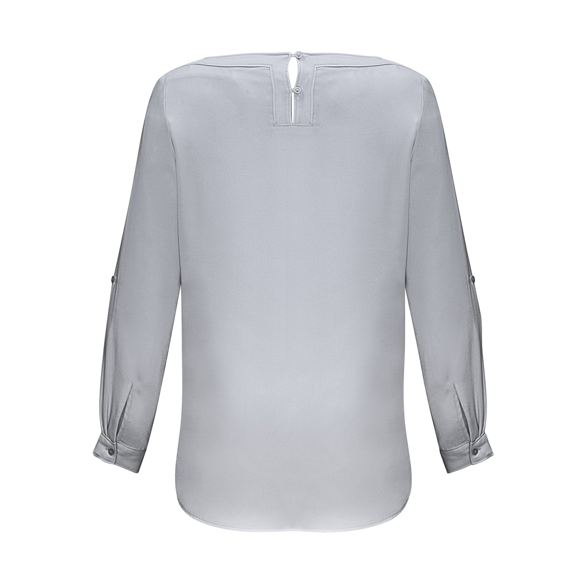 An elegant boatneck blouse adds a touch of minimalist chic to your fashionable uniform. A longer length with a stylish shirt-tail hem and functional roll-up sleeves are a practical feature for the working woman.
