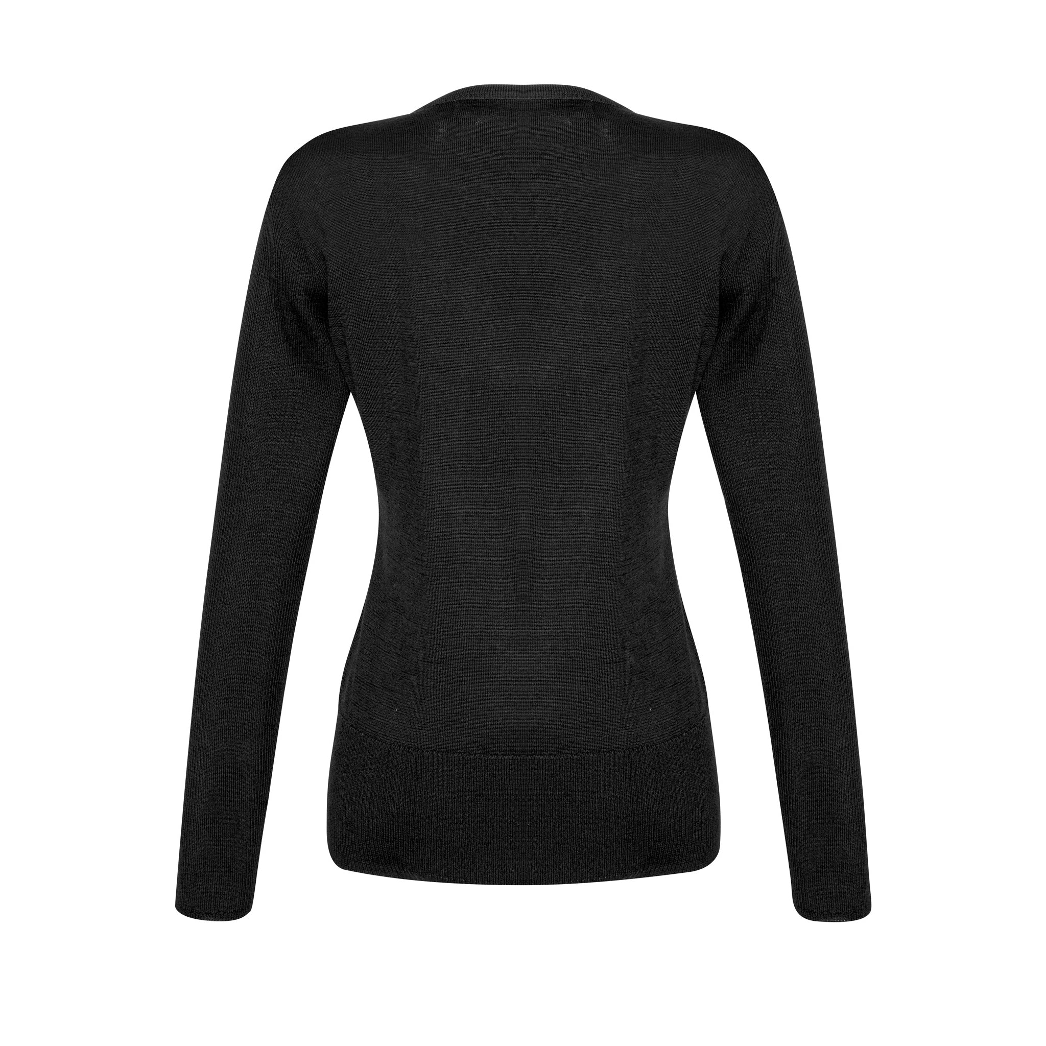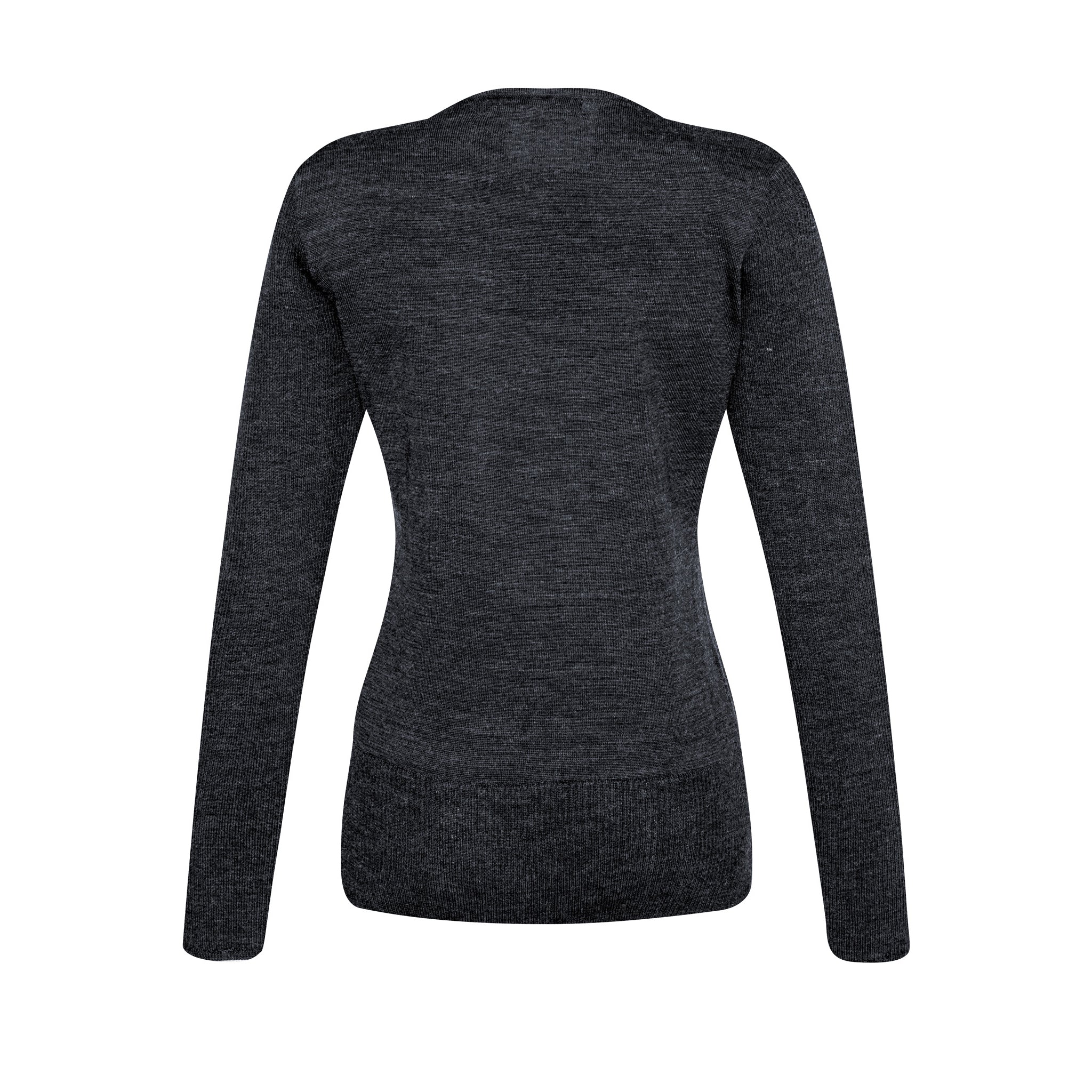 Contemporary modern styled pullover with a longer length and flattering V-neck shape that layers perfectly over collared shirts. The merino wool blend yarn is pill resistant and machine washable on a wool setting.