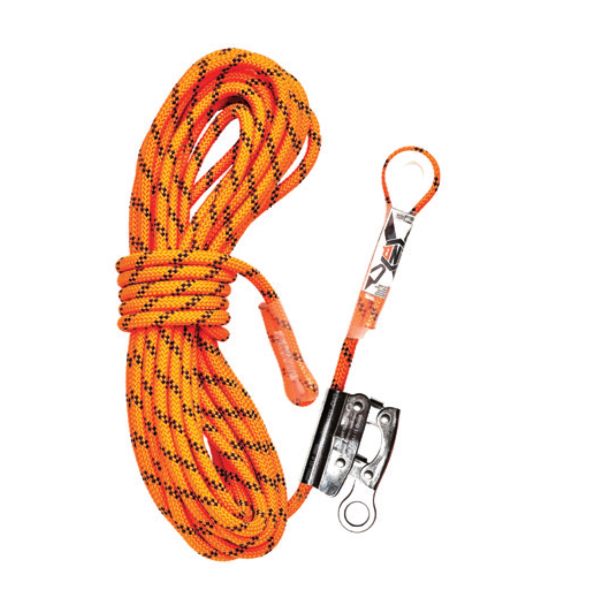 - RKRG015 Rope kernmantle with thimble eye & rope grab. 15M with permanently attached shock absorbing 450mm assembly and screw gate karabiner