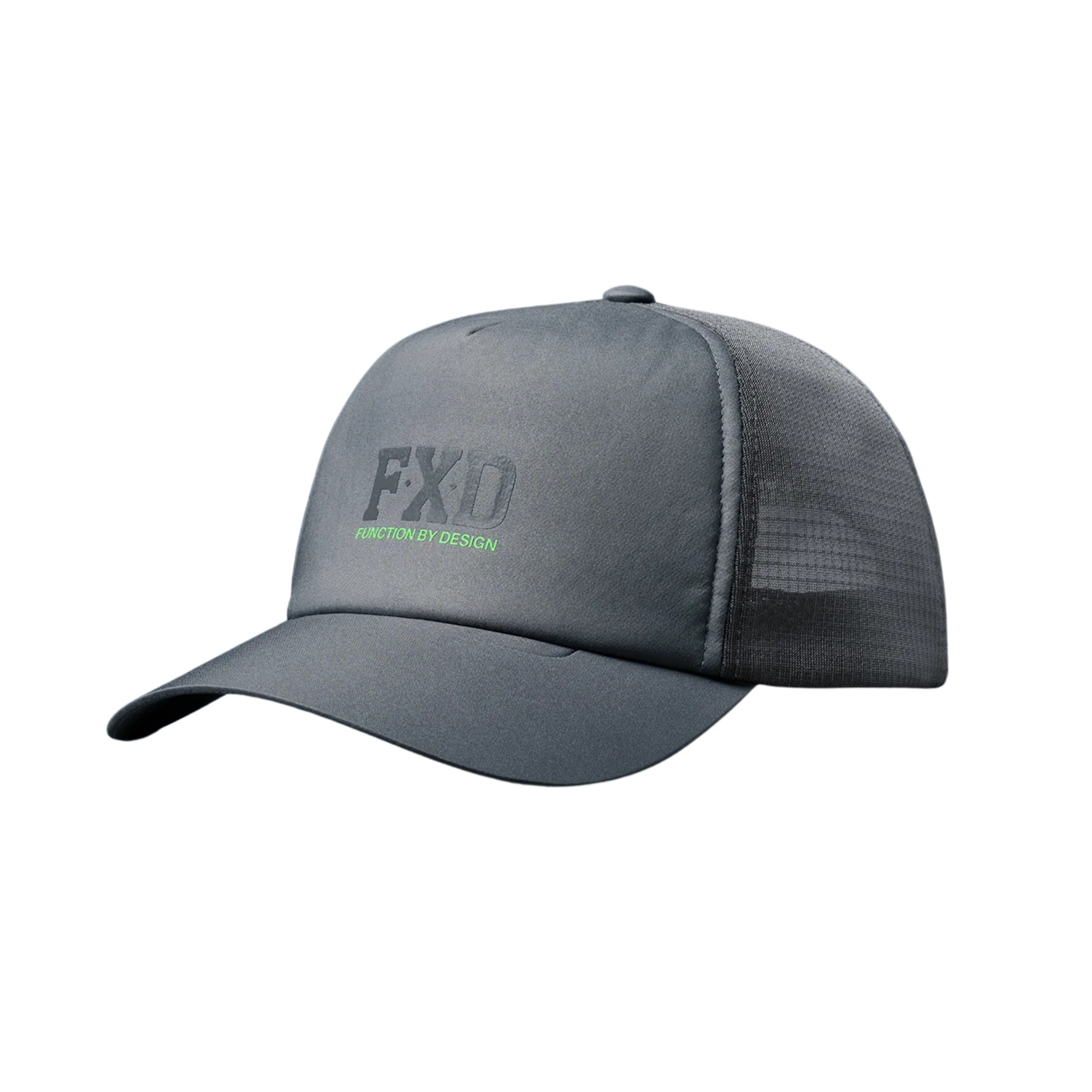 The FXD CP.13 Tech Trucker Cap is a lightweight, structured trucker cap featuring a 5-panel design, made from monofilament mesh and breathable polyester.