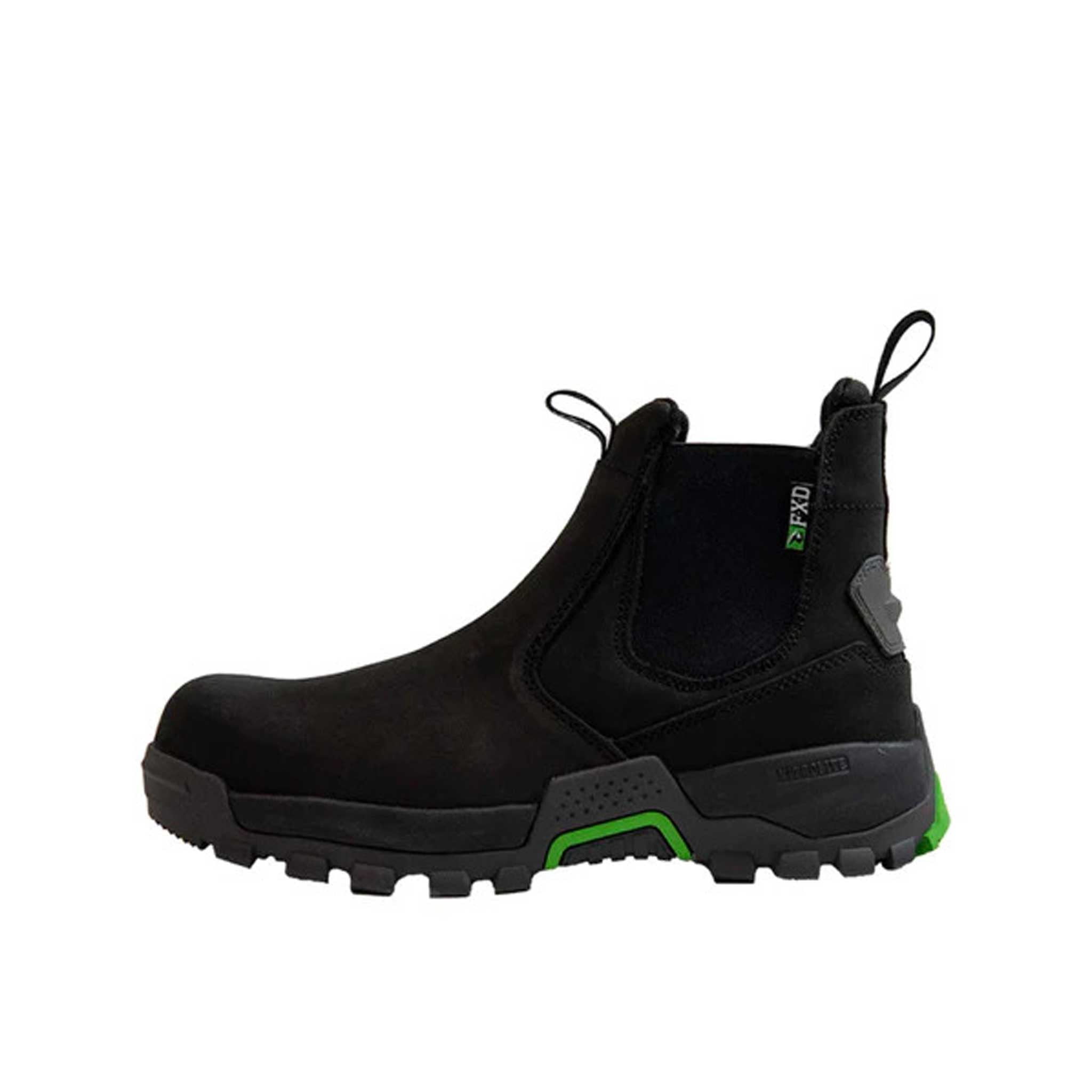 FXD WB.4 Nitrolite™ Slip On work boots are high performance double bound elastic sided work boots featuring Nitrolite™ midsole technology for all day comfort. The WB.4 SLIP ON is Australia and New Zealand Safety Standard compliant and the bonding and composite toe have been tested and certified by Benchmark Product Certification.