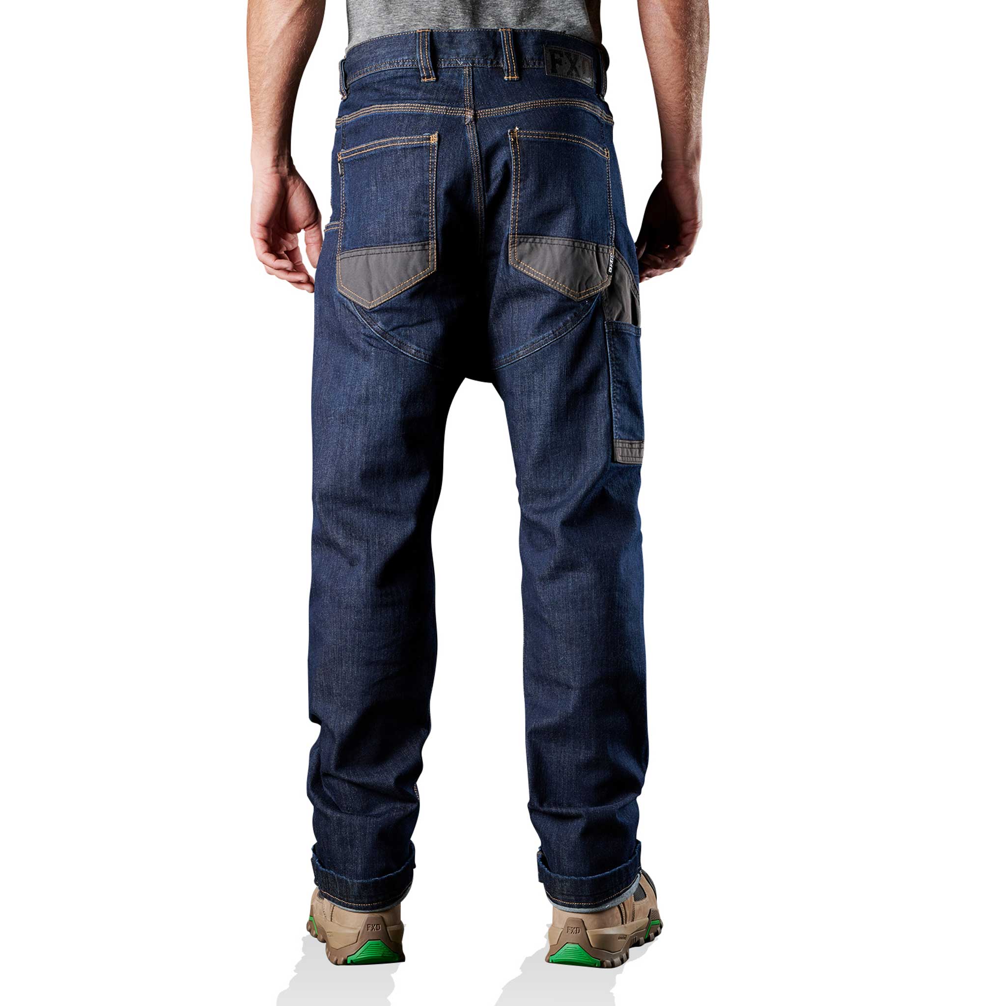 FXD WD.1 original work denim in Indigo Stomp Wash is made from 10.5 ounce (356 GSM) S-GENE® denim from cone DENIM™ mills in North Carolina, USA. Cone DENIM™ have been a world leader in denim innovation from their American heritage based mills in Greensboro North Carolina since 1891. The FXD WD.1 original work denim features Dura500™ advanced nylon and polyurethane canvas abrasion panels. Dura500™ is a 500 denier nylon oxford treated with polyurethane for high tensile strength and performance durability. Dura500™ provides long-lasting enhanced tear and abrasion resistance.