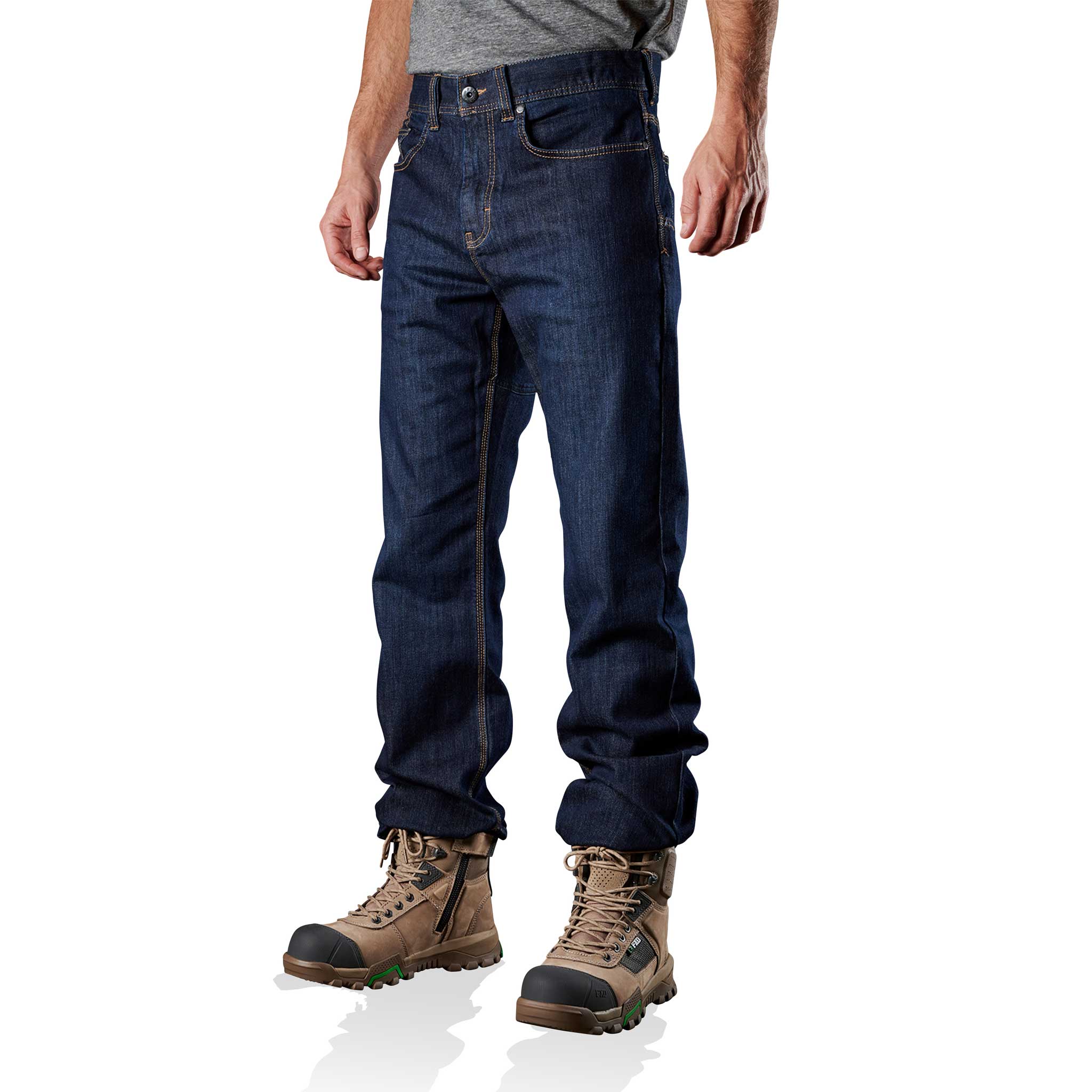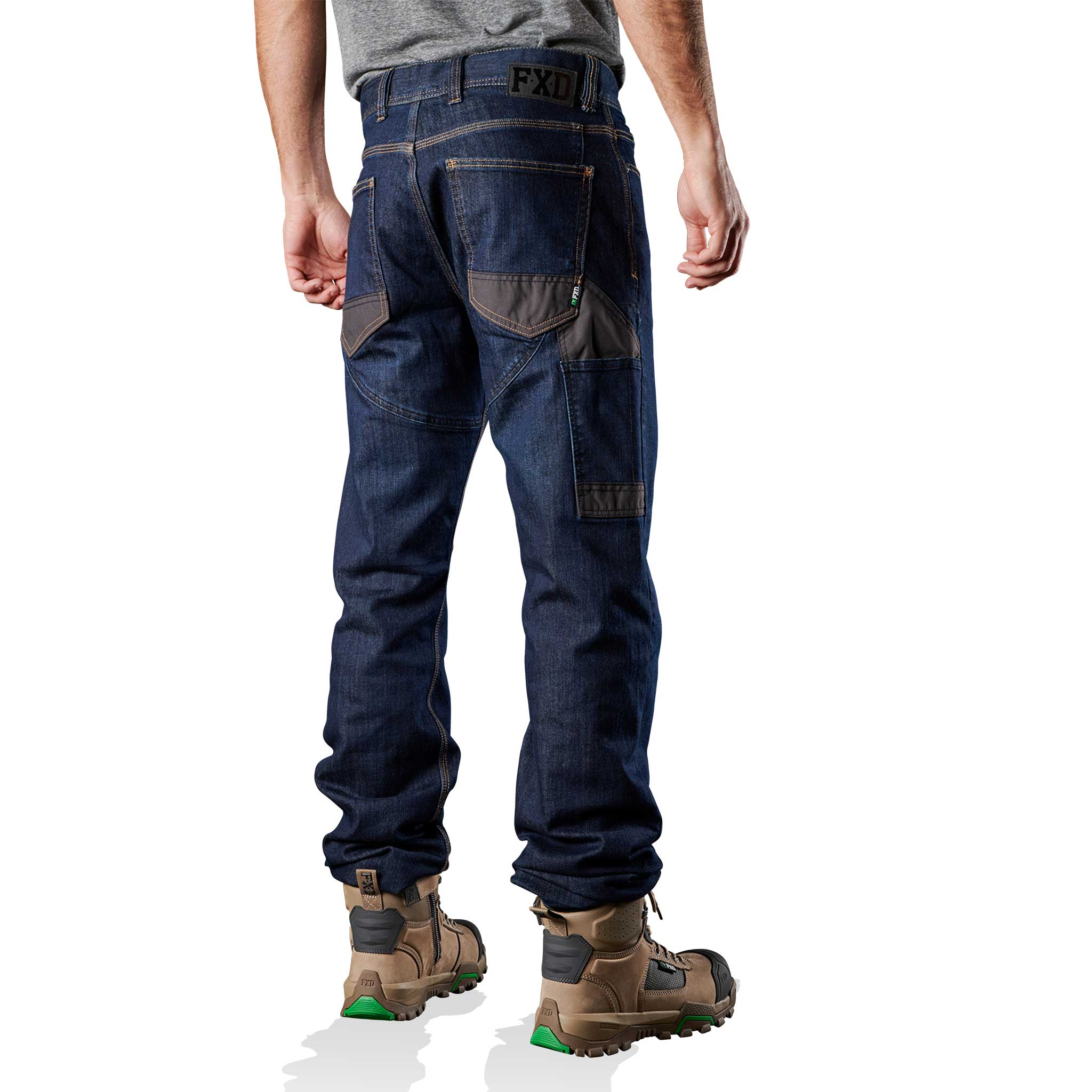 FXD WD.2 original work denim (without kneepads) in Indigo Stomp Wash are made from 10.5 ounce (356 GSM) S-GENE® Denim from cone DENIM™ mills in North Carolina, USA. Cone DENIM™ have been a world leader in denim innovation from their American heritage based mills in Greensboro North Carolina since 1891. The FXD WD.2 original work denim (without kneepads) features Dura500™ advanced nylon and polyurethane canvas abrasion panels. Dura500™ is a 500 denier nylon oxford treated with polyurethane for high tensile strength and performance durability. Dura500™ provides long-lasting enhanced tear and abrasion resistance.