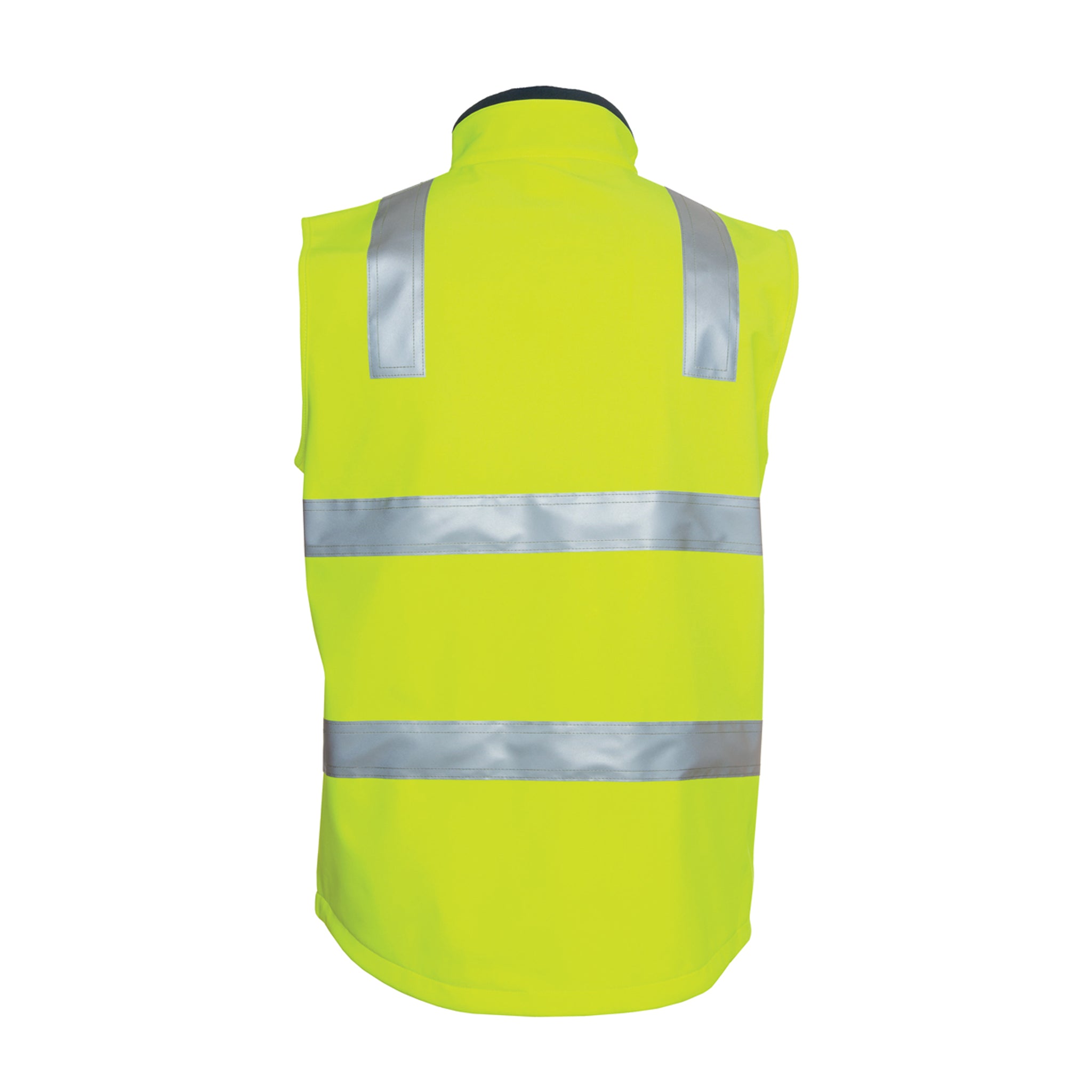 95% Polyester for durability, and 5% Elastane four-way stretch bonded with membrane and micro fleece softshell style vest.