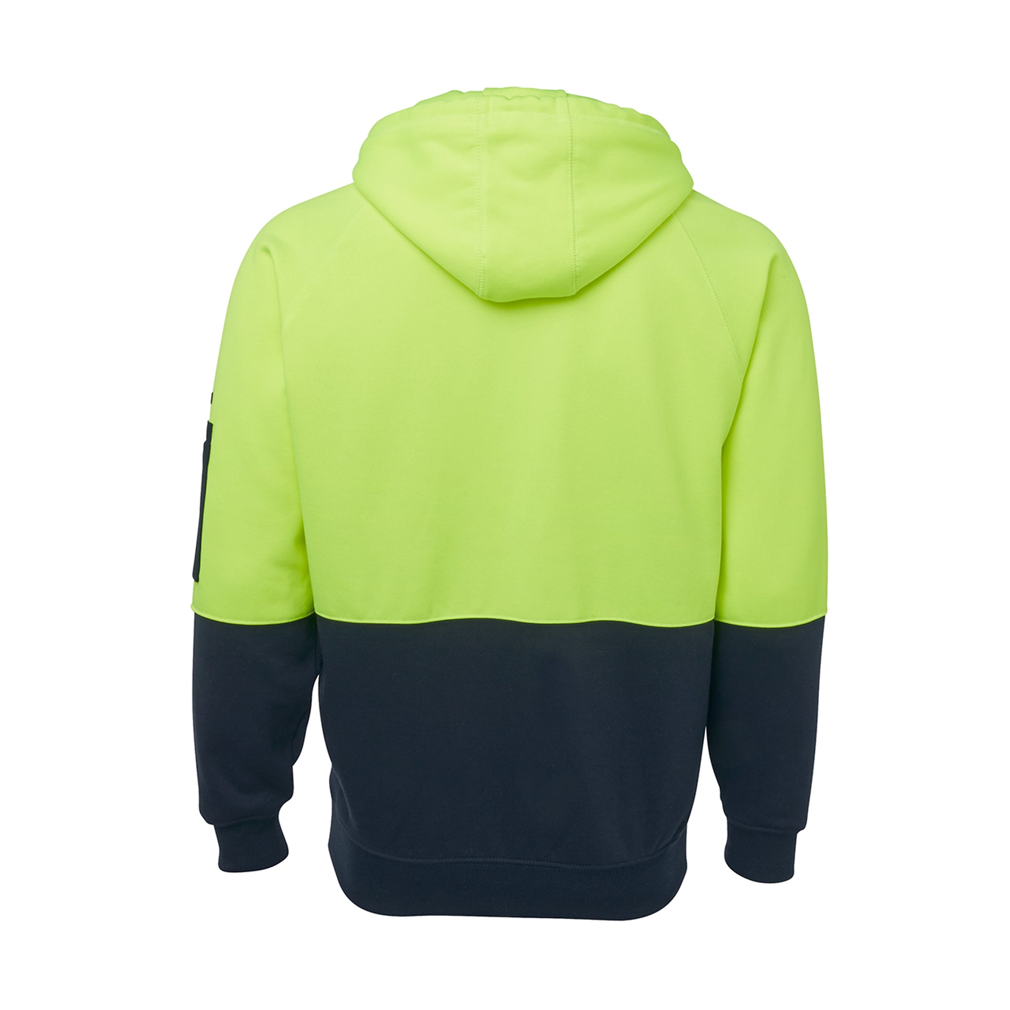 JB's Wear Hi-Vis Full Zip Fleecy Hoodie delivers a classic fit with 80% polyester for durability and 20% cotton for comfort. Made from 280gsm fleece, it features contrast panels, ribbed sleeve cuffs, a drawcord hood, and plenty of storage with two front pockets and a pen pocket on the sleeve.