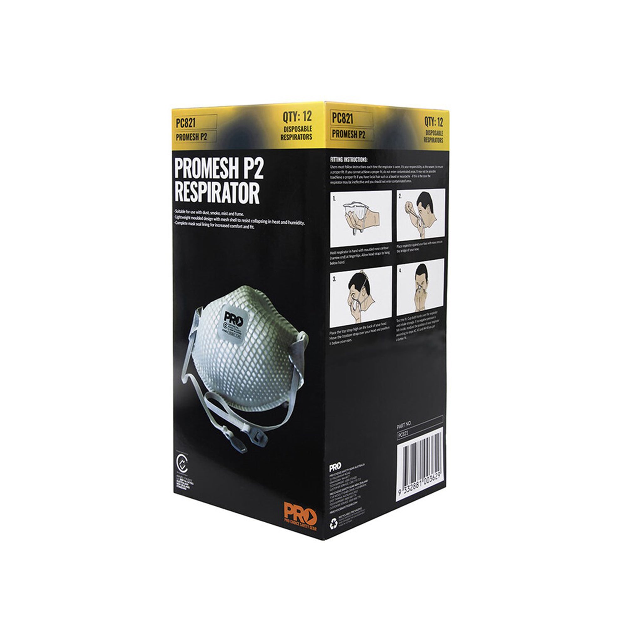 Experience exceptional protection from dust, smoke, mist, and fumes with the Pro Choice Pro-Mesh Respirator (Box of 12). Designed to withstand heat and humidity, its lightweight moulded design with mesh shell ensures durability and reliability.