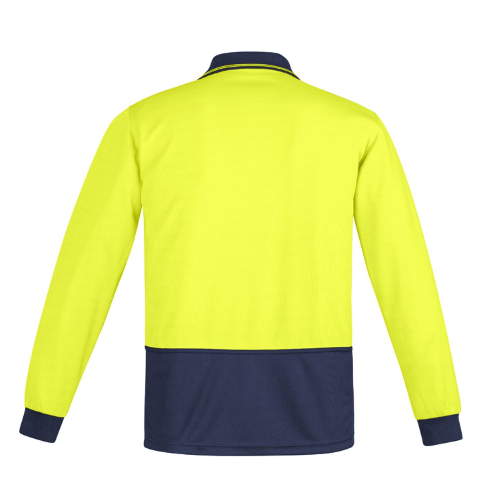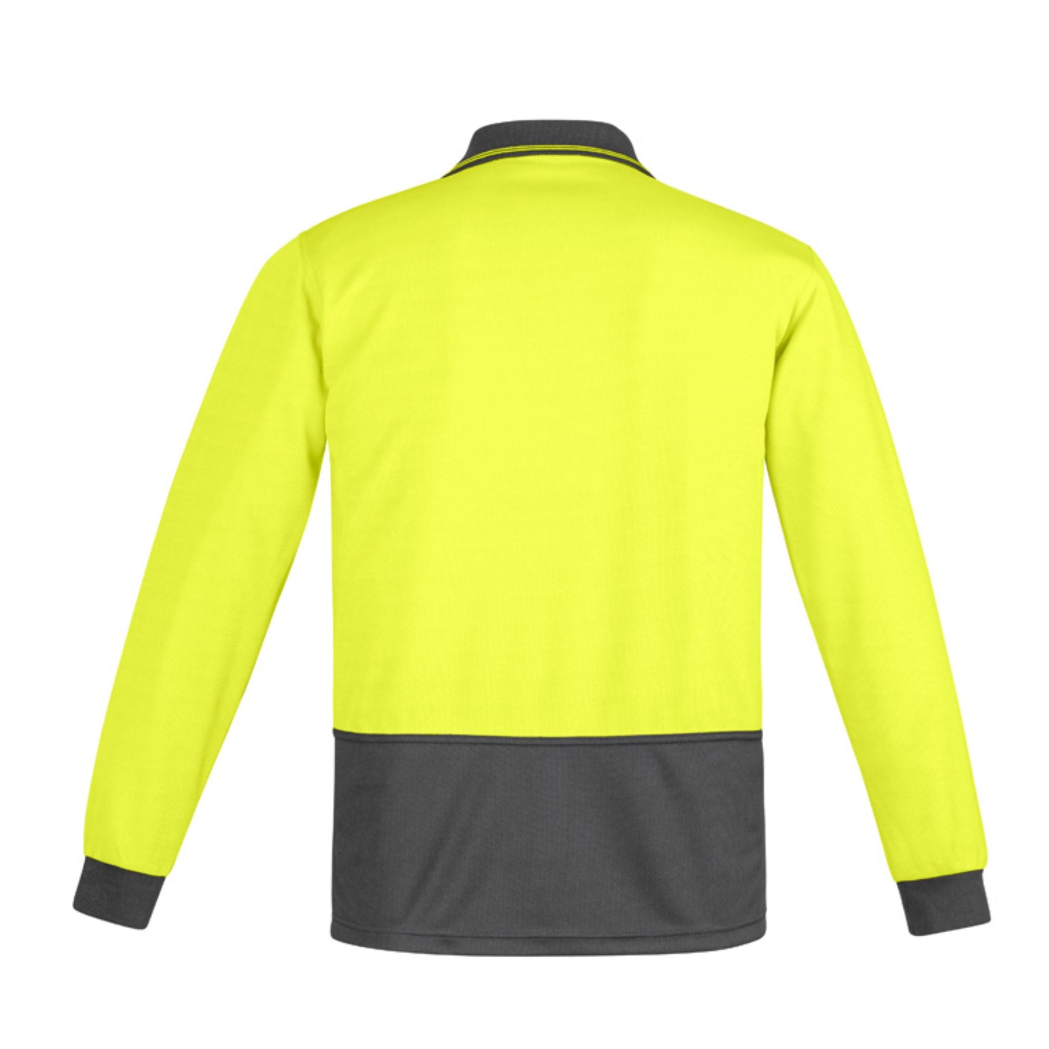 Men’s Hi Vis Day Comfort Back Long Sleeve Polo in polyester fibres that provide strength and vibrant colours on the front of the fabric where it’s needed.
