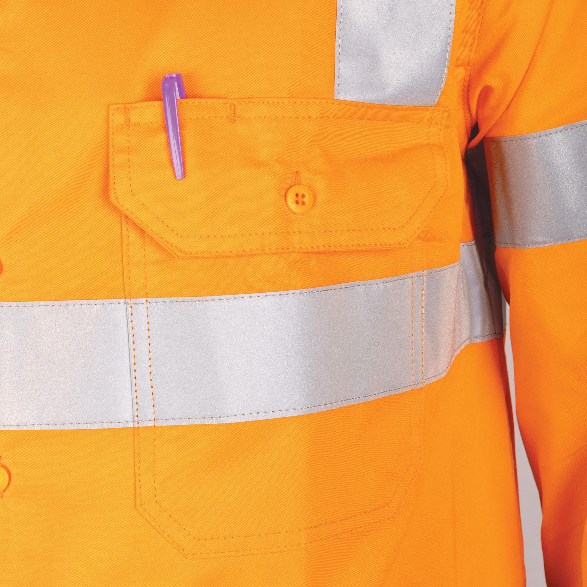 Stay visible and comfortable on the job with the Lightweight VIC Rail Hi-Vis Drill Shirt featuring reflective tape for enhanced safety.