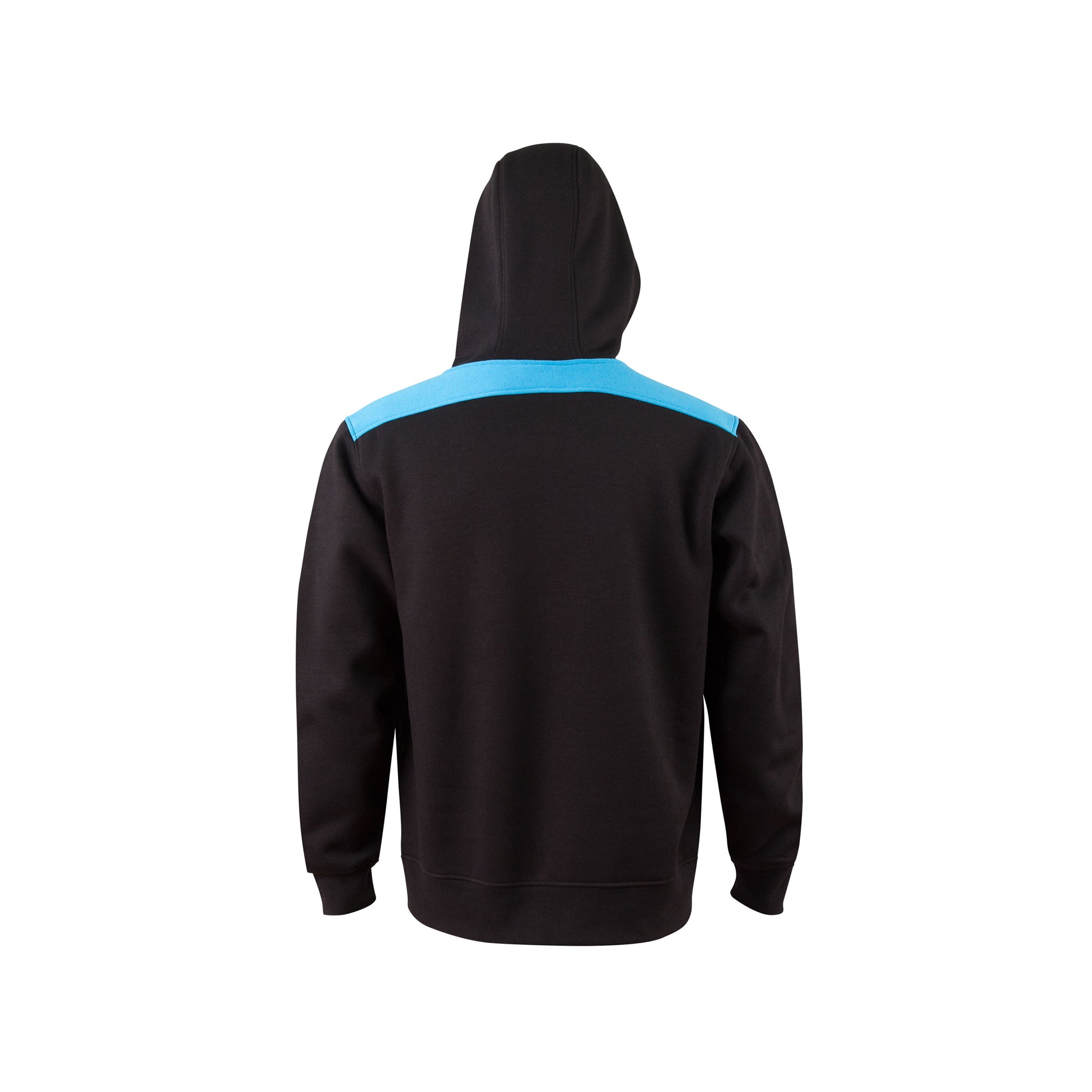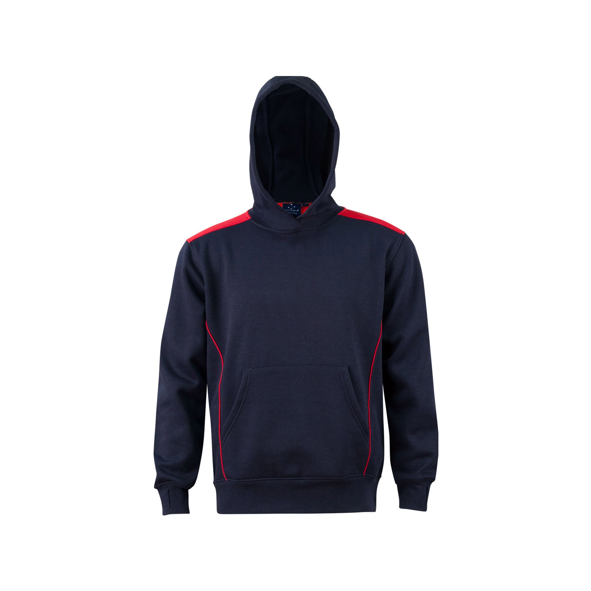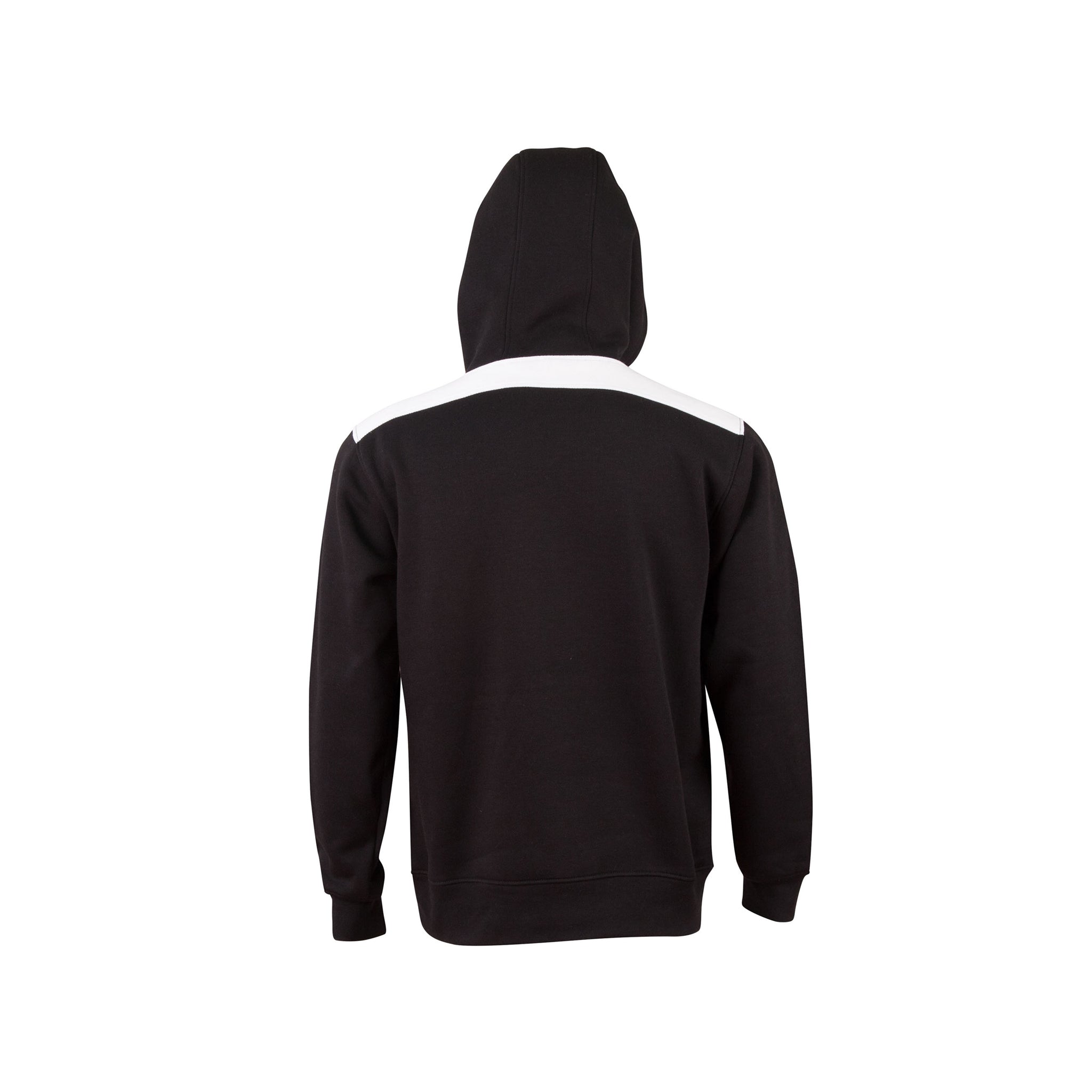 A fashion fleece hoodie with contrasting-coloured shoulder panels and side piping.