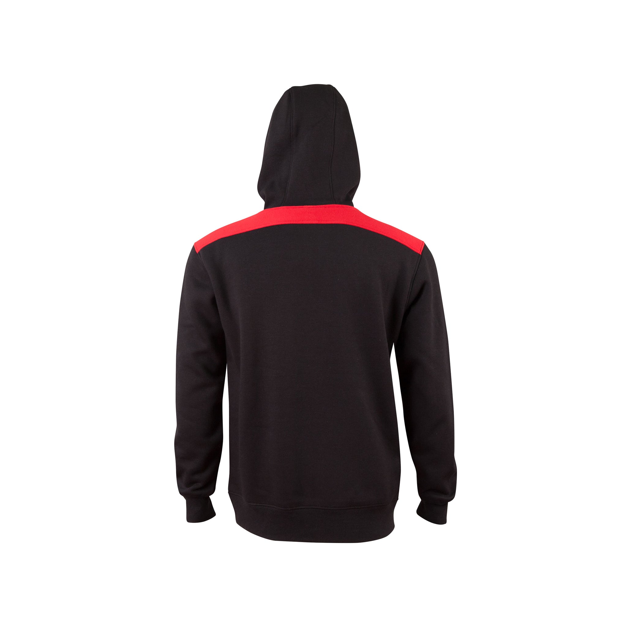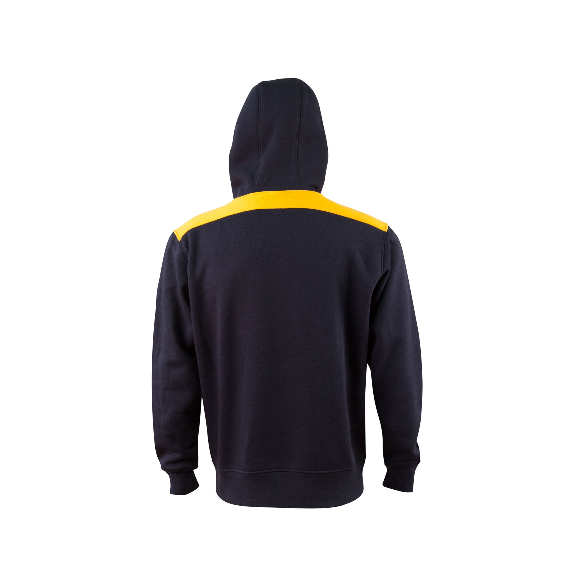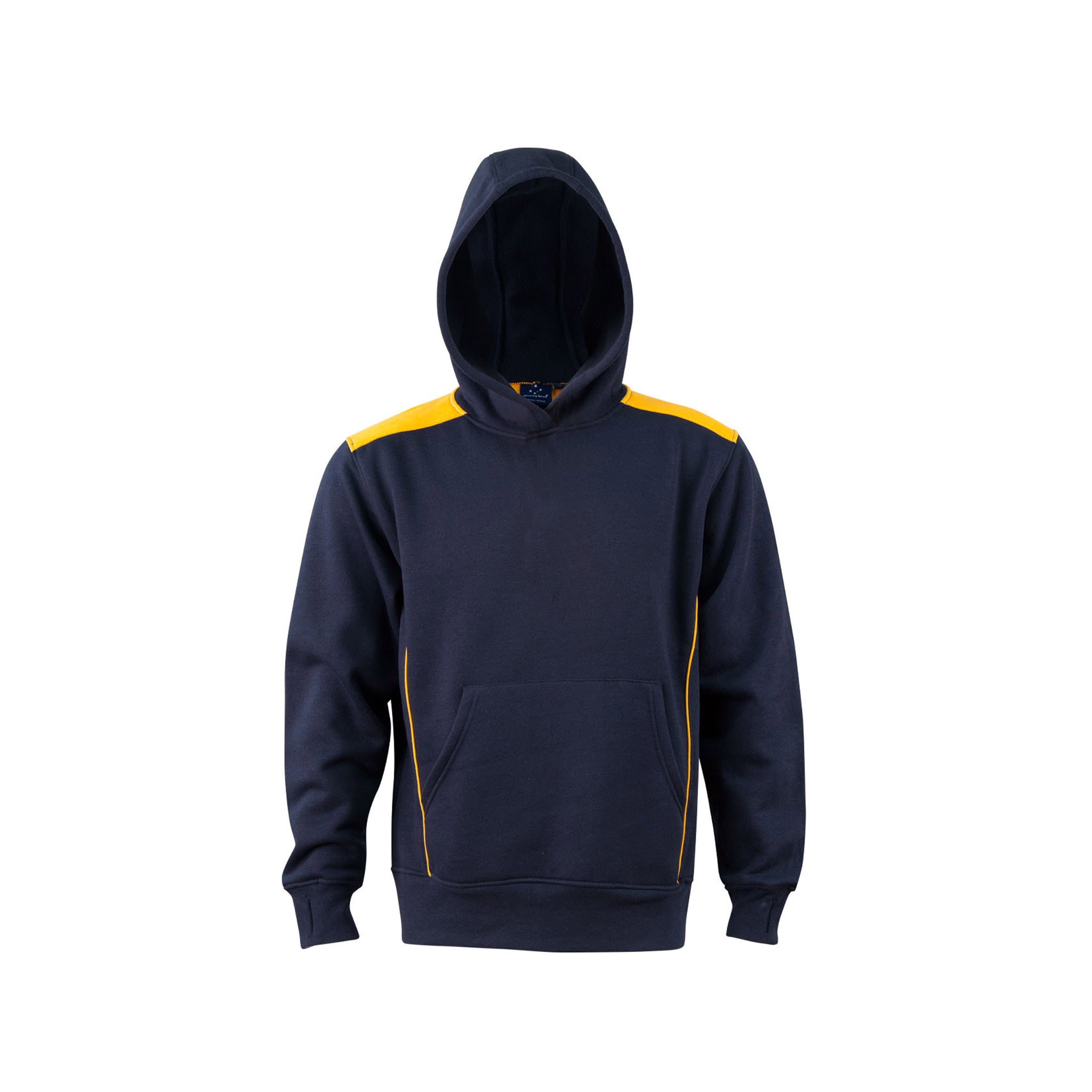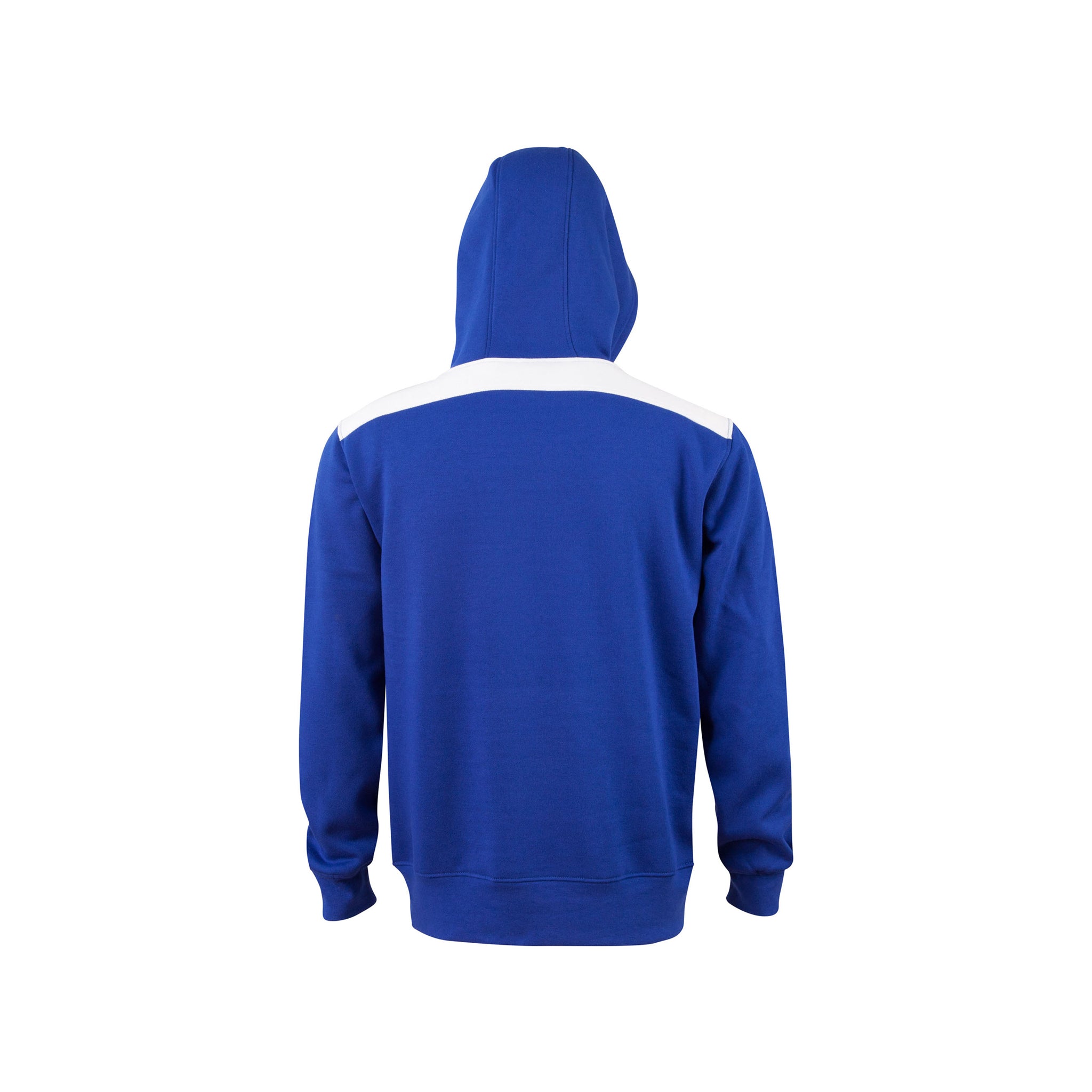 A fashion fleece hoodie with contrasting-coloured shoulder panels and side piping.