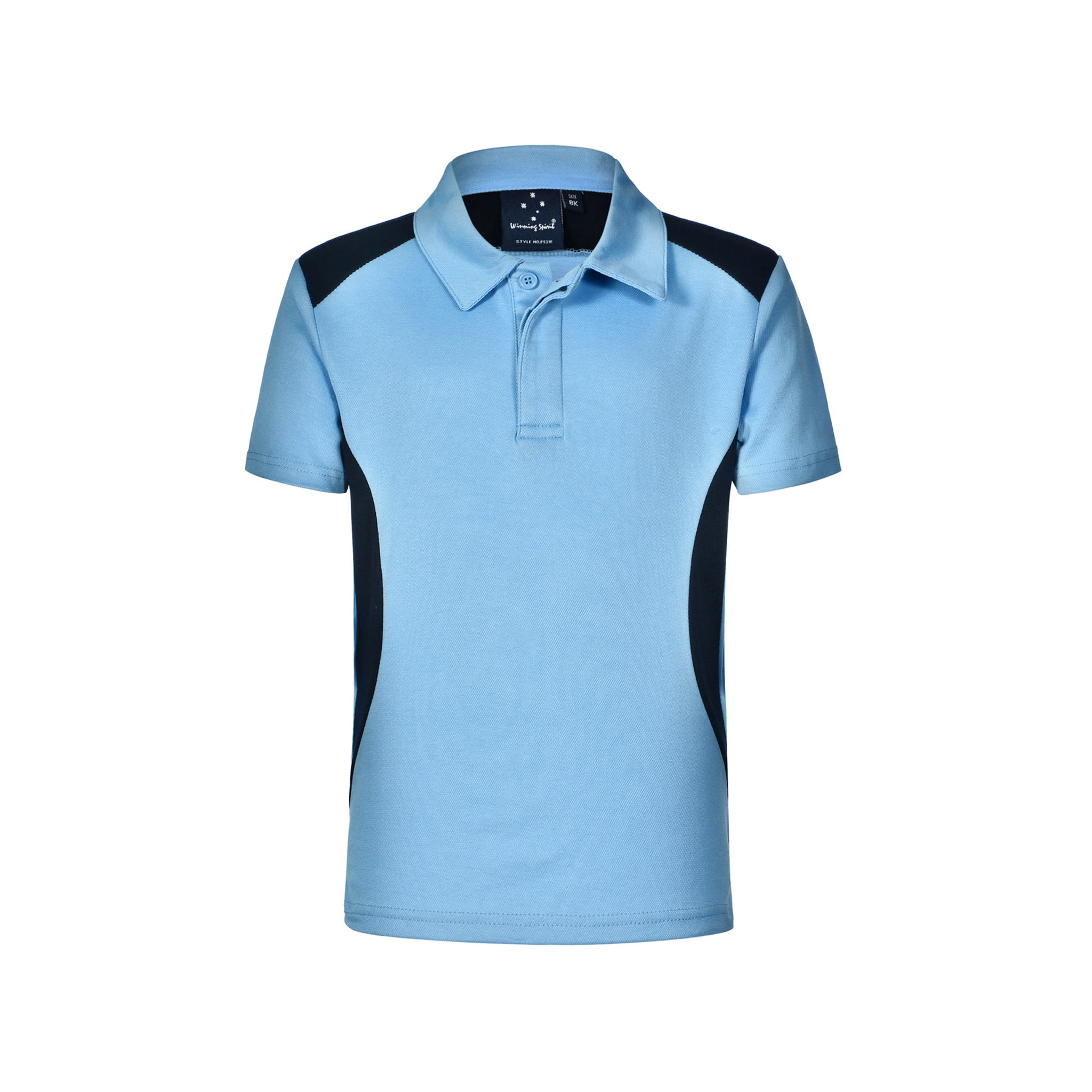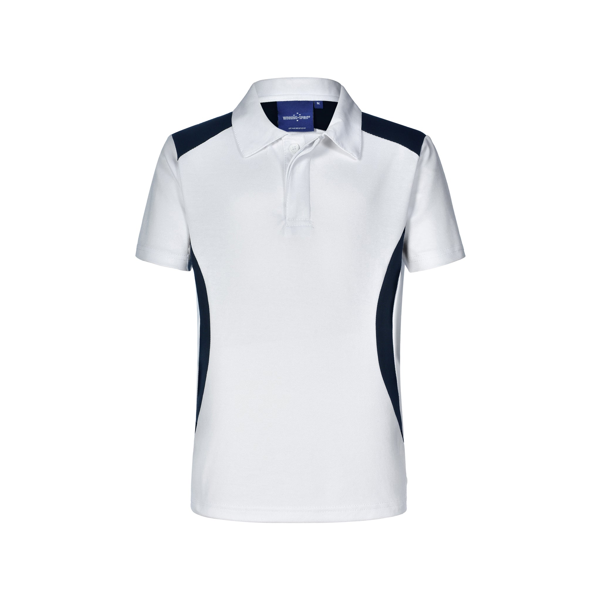 The Winning Spirit Kids Winner S/S Polo features a contrasted design on the shoulder and side, adding a touch of style to the overall look.